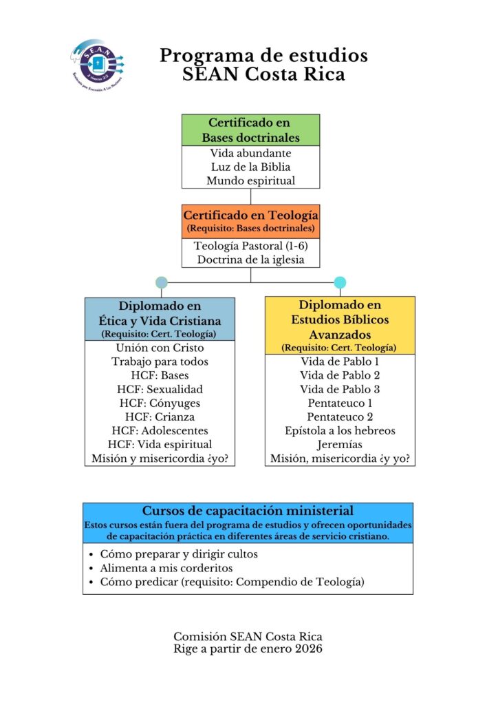 Un compendio de tres cursos que lleva al estudiante a conocer a Dios de una manera personal, conocer la Biblia de una mejor manera, entender el mundo espiritual y desarrollar una vida cristiana conforme al modelo de Cristo.